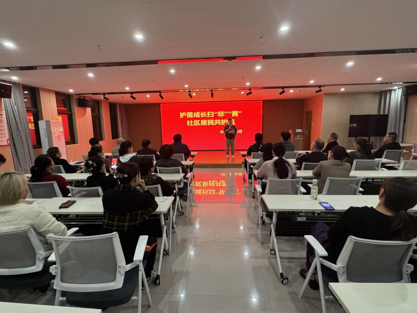 为引导居民共同参与“扫黄打非”工作,10月20日,郑州市管城回族区十八里河街道办事处紫荆华庭社区基层站点举办“护苗成长扫‘黄’‘非’·社区居民共护航”专题讲座。