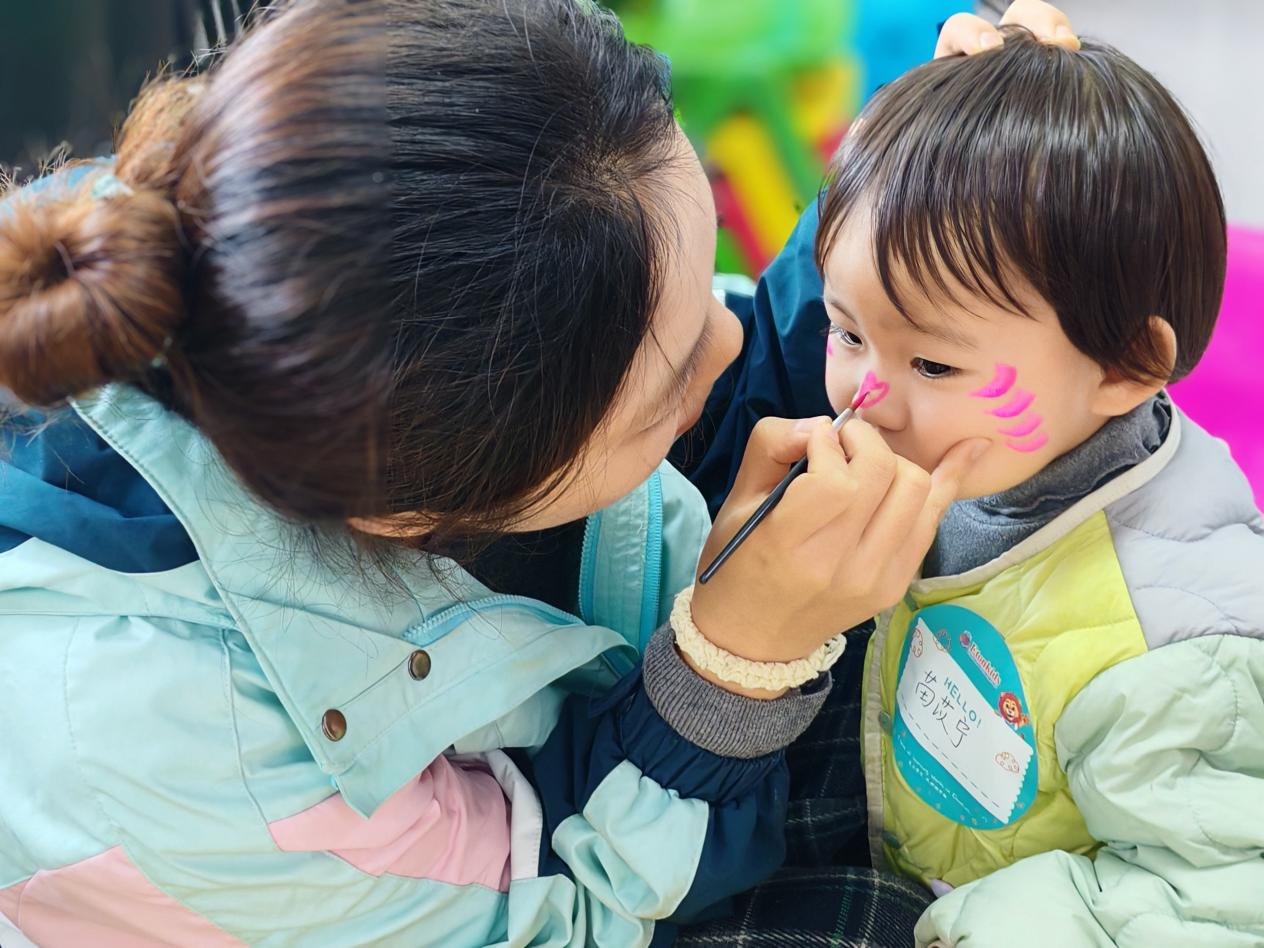 本次活动精准聚焦2-3周岁幼儿的发展需求,精心设计了亲子艺术创作、蒙氏工作展示、绘本阅读等多个环节。活动现场充满了欢声笑语,孩子们在专业老师的引导和家长的陪伴下,动手体验,尽情探索,不仅锻炼了感知与协作能力,更在互动中增进了亲子情感。最受孩子们欢迎的莫过于趣味面部彩绘——小朋友们争先恐后地围在老师身边,随着画笔轻点,一个个可爱的图案跃然脸上,孩子们笑容绽放,现场洋溢着纯真与欢乐。