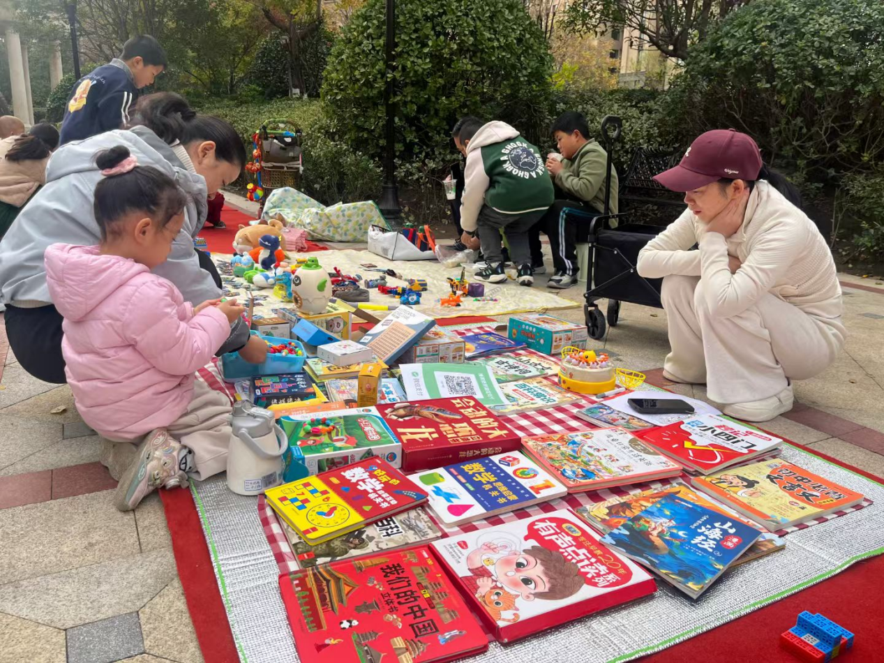 广场上,80余个摊位整齐排开,绘本、玩具、绿植、手工艺品琳琅满目,不少摊位挂着暖心“交换卡”——“小熊布偶陪娃睡过千夜,寻新主人”“九成新滑板车,盼遇爱运动的小朋友”。5岁的小糖举着用拼图换来的发夹蹦跳着:“和新朋友交换,比买新的更开心!”家长李女士边整理摊位边感慨:“家里堆了半年的玩具,今天全换成书了,这市集办得好!”社区工作人员表示:“跳蚤市场是小切口,暖的是邻里心。后续将增设技能交换环节,让旧物持续发光,推动‘共享’成为社区生活新日常。”