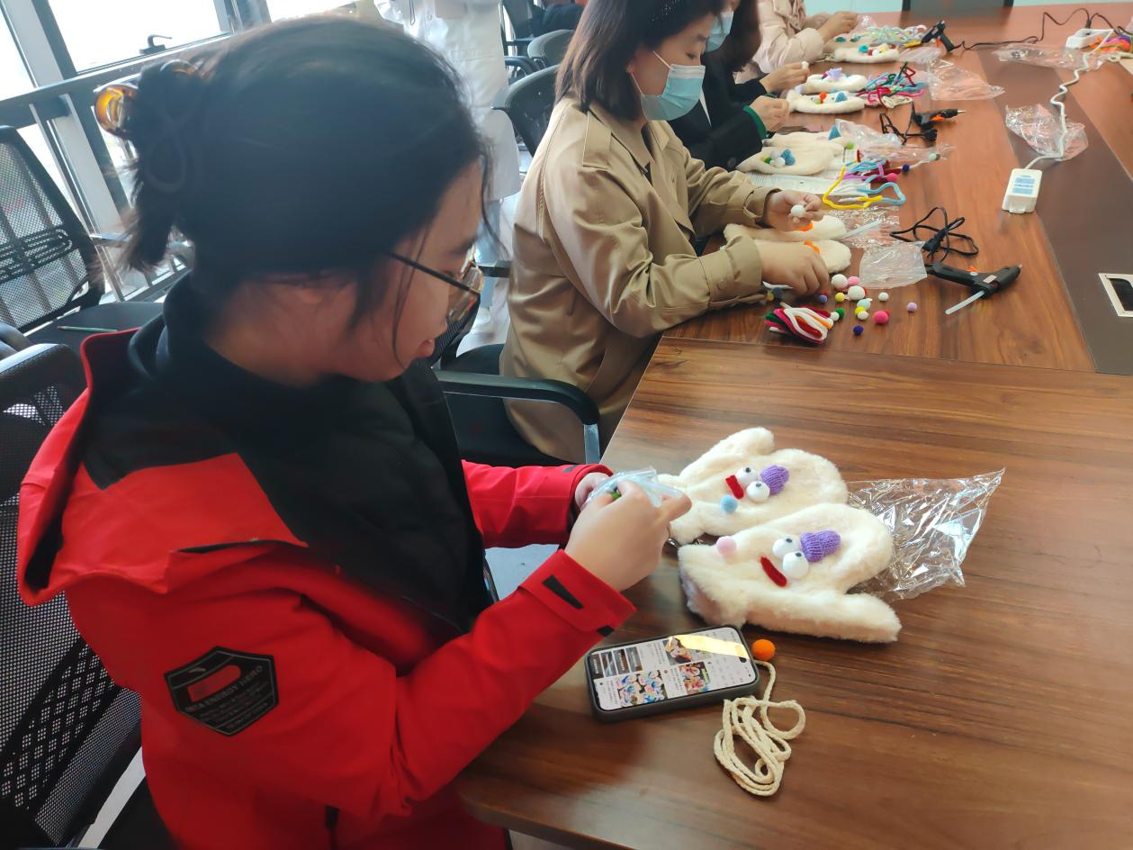 活动伊始,专业营养讲师为到场的孕妈们开展孕期营养知识科普,结合孕早中晚期胎儿发育特点,讲解营养素补充、饮食均衡、体重管理等实用知识,现场互动热烈。知识分享环节结束后,活动进入了轻松愉快的手工制作阶段。在工作人员的指引下,孕妈们纷纷开始运用各种可爱的配饰、彩色毛球和扭扭棒,在纯色手套上精心点缀、绣制图案,专注于自己的手套DIY创作。每一位孕妈都沉浸在手作的乐趣之中,最终都成功制作出了独一无二、充满个人风格的定制手套。