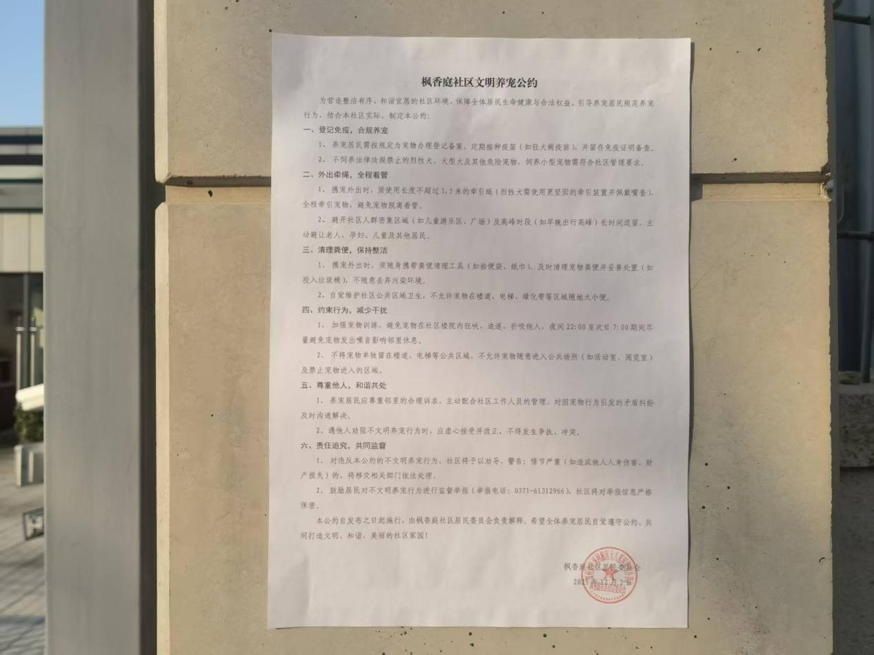 下一步,枫香庭社区将通过宣传栏、居民群、入户发放等方式加大《公约》宣传力度,推动“公约”变“自觉”,让文明养宠成为社区新风尚,共同打造人与宠物和谐共处的美好家园。