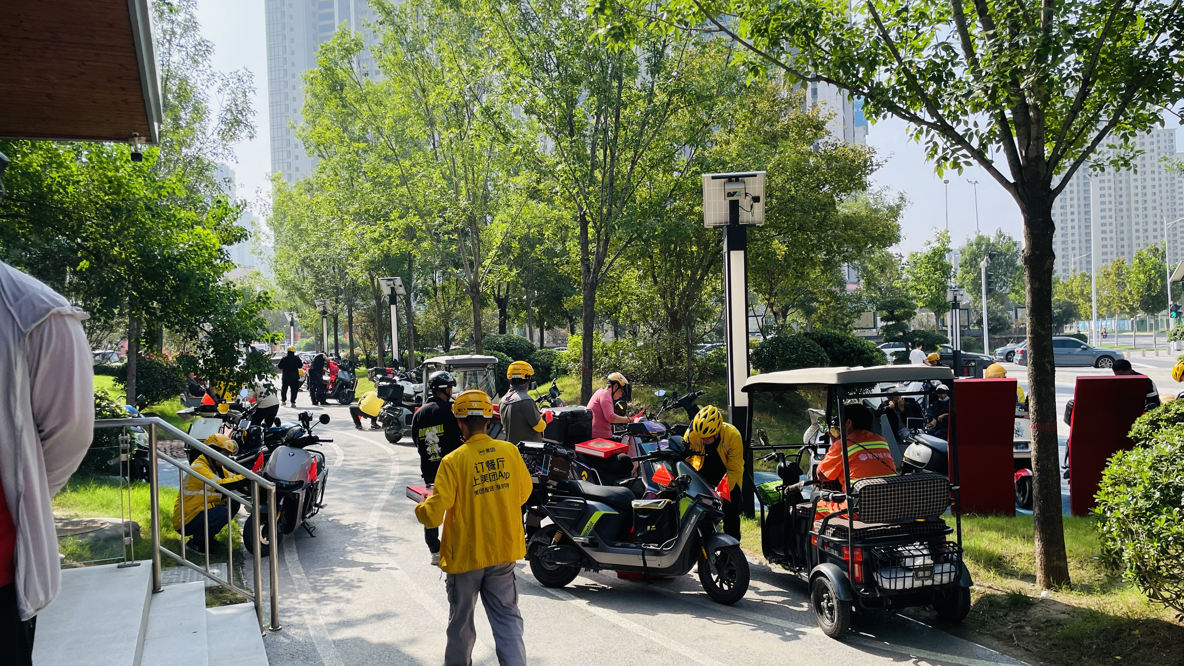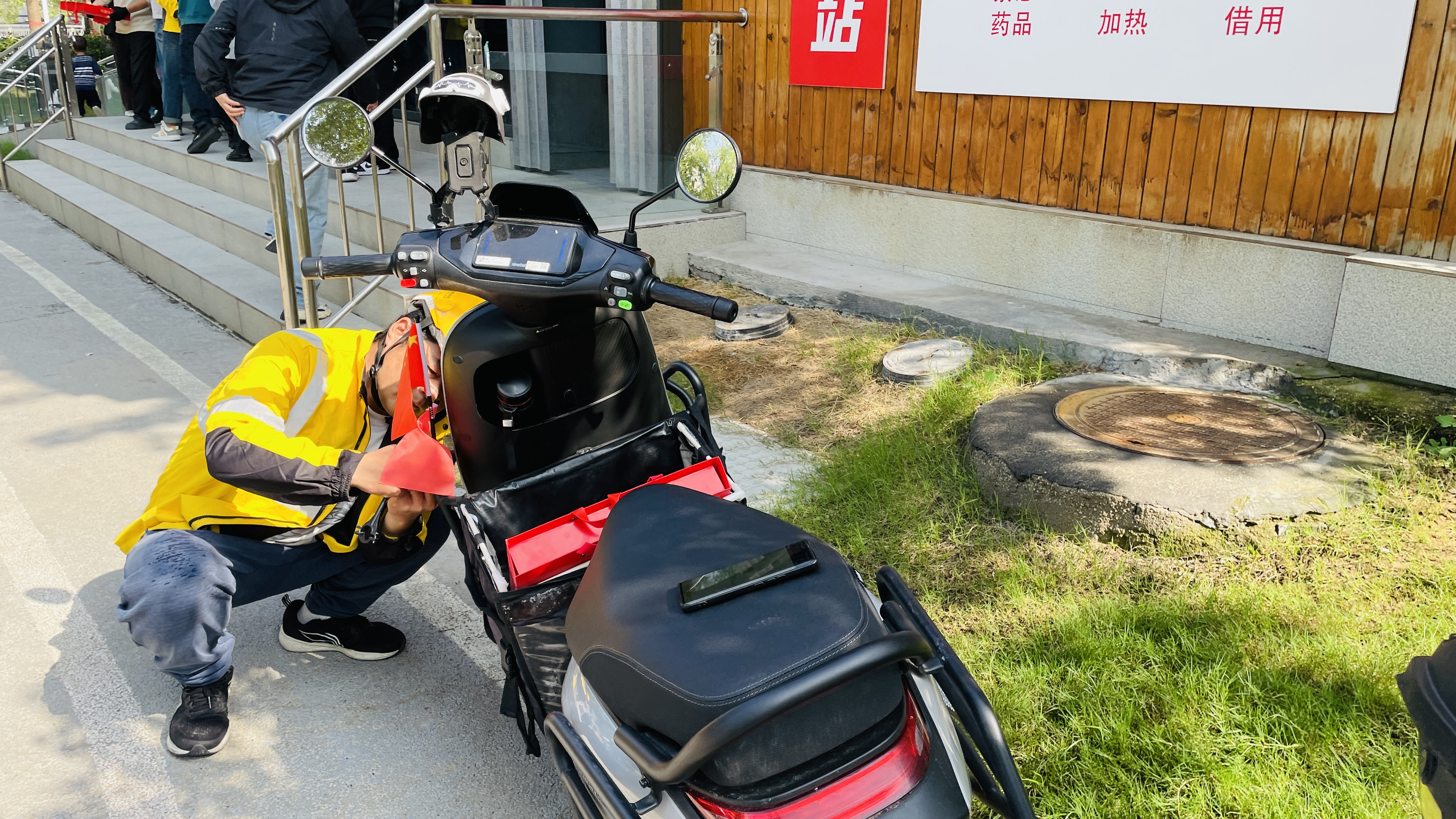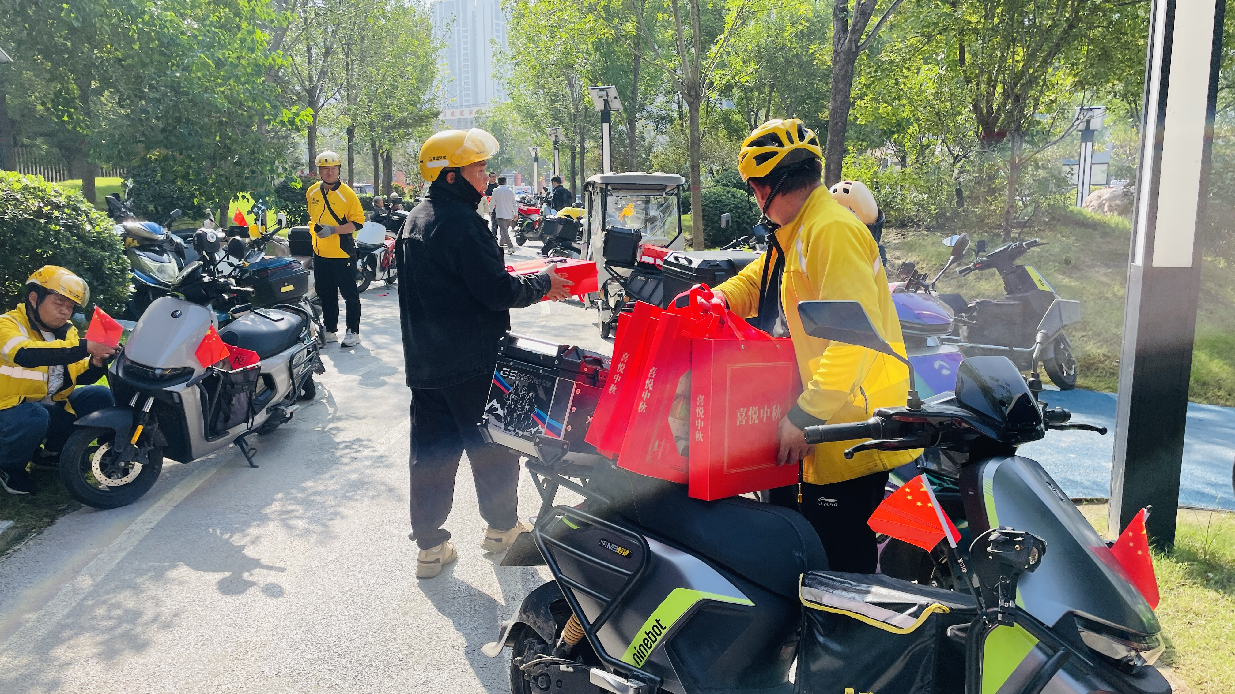 最引人注目的环节,是为骑手的电动自行车安装国旗。骑手们将一面面崭新的五星红旗,精心安装在车辆醒目位置。顷刻间,一排排停靠的“小电驴”化身为一片红色的海洋。这些悬挂着国旗的送餐车,随后将奔赴城市各个角落,成为双节期间一道道“流动的风景线”,传递着节日的喜悦与家国的自豪。
