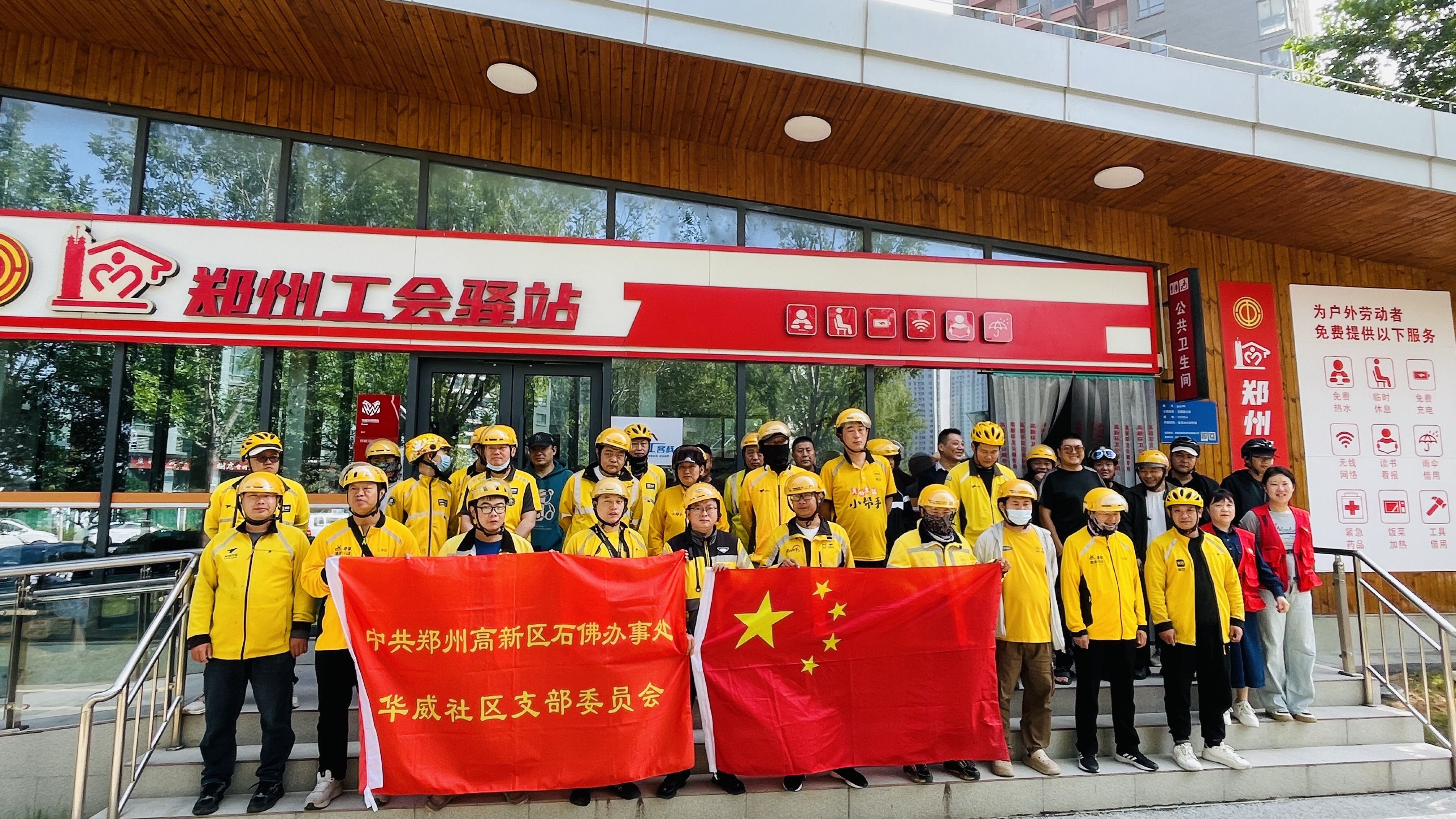 秋高气爽,丹桂飘香。中秋、国庆双节临近,为深入推进新业态友好场景建设,切实提升外卖骑手、快递小哥等新兴领域劳动者的获得感与归属感,9月30日上午,郑州高新区石佛办事处华威社区党支部依托华强商圈工会联合会,在郑州工会驿站开展“双节同庆·暖‘新’同行”主题活动。