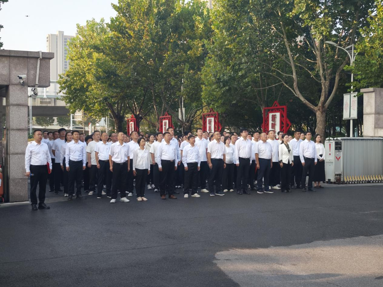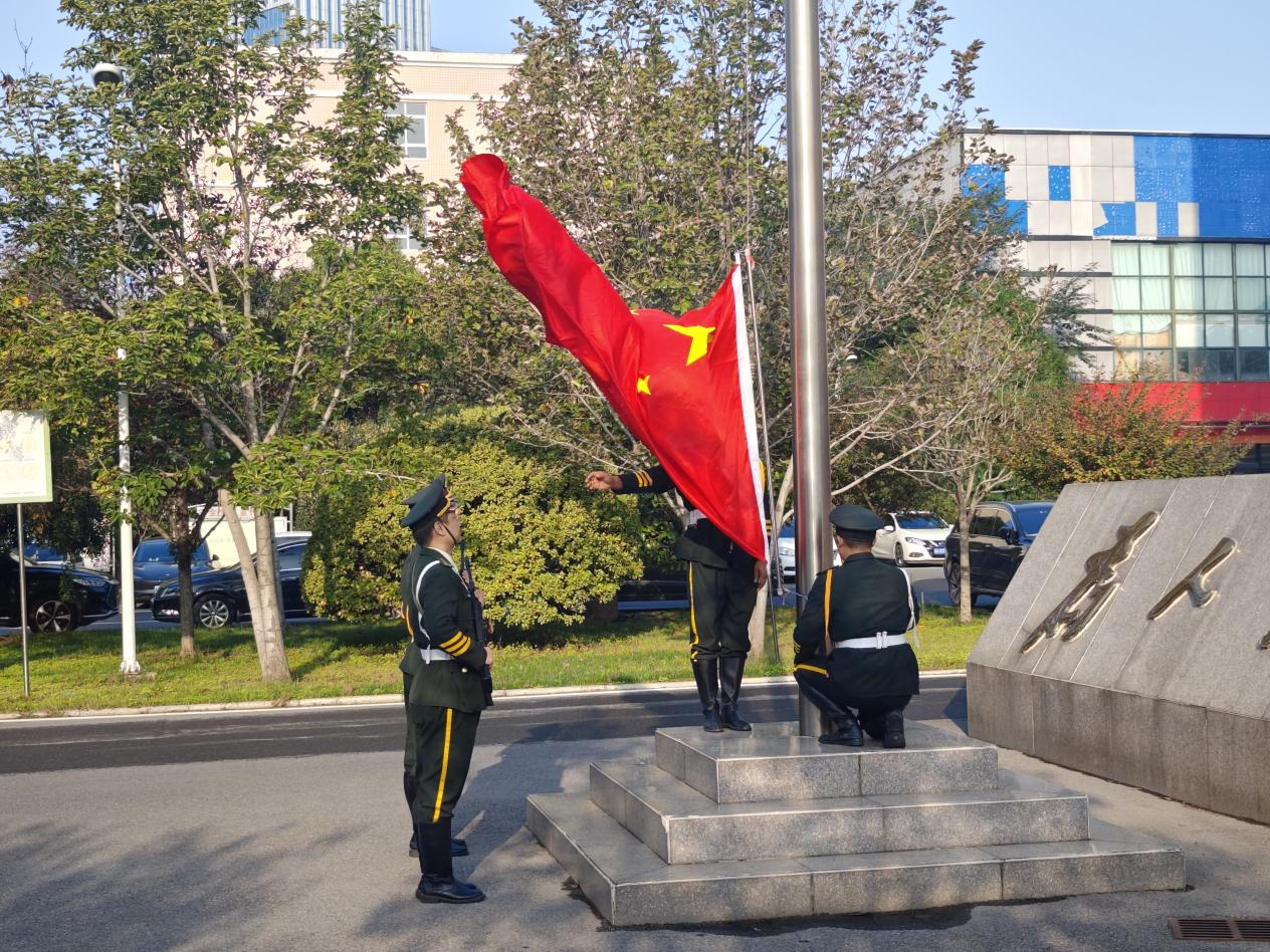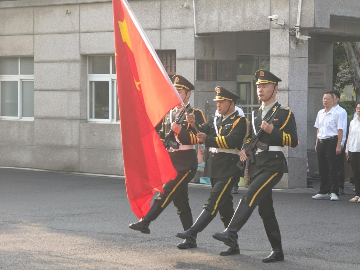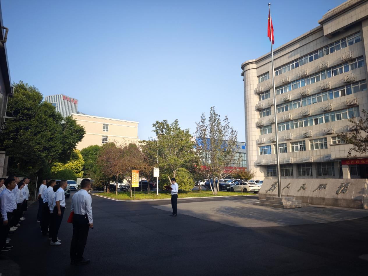 上午八时,升国旗仪式正式开始。全体人员整齐列队、神情肃穆,护旗手和升旗手身着整齐服装,昂首阔步走向升旗台。随着雄壮激昂的国歌声奏响,鲜艳的五星红旗冉冉升起,全体人员满怀对祖国的自豪感,面向国旗行注目礼伴。