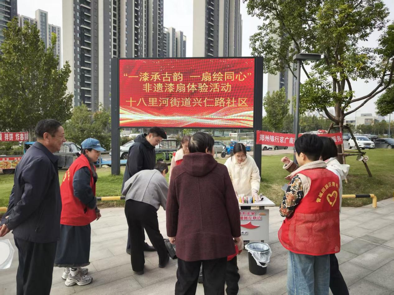 为传承中华优秀传统文化,增进邻里情谊,构建和谐社区氛围,10月22日,郑州市管城回族区十八里河街道办事处兴仁路社区精心组织“一漆承古韵 一扇绘同心”非遗漆扇体验活动,吸引辖区30余组家庭、50余名居民踊跃参与。