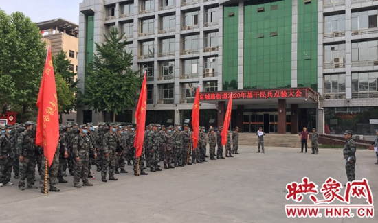 5月14日下午,荥阳市城关乡组织开展2020年基干民兵点验大会。当日下午3时,在该乡武装部副部长丁超一声响亮的集合命令下,130名统一着迷彩服、斗志昂扬的基干民兵迅速集结。
