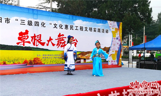 在嫘祖文化广场,陈庄村的扇子舞《开门红》为“草根大舞台”拉开序幕,豫剧清唱《紧走慢走四里半》让观众捧腹大笑,文化志愿者的川剧《变脸》让现场观众在一阵阵笑声中让人们感受欢天喜地新变化;大型传统豫剧《人生在世孝当先》艺术再现了我国家庭传统美德,博得了观众阵阵掌声;《祝福祖国》歌曲将节目推向高潮,引得观众连连喝彩。