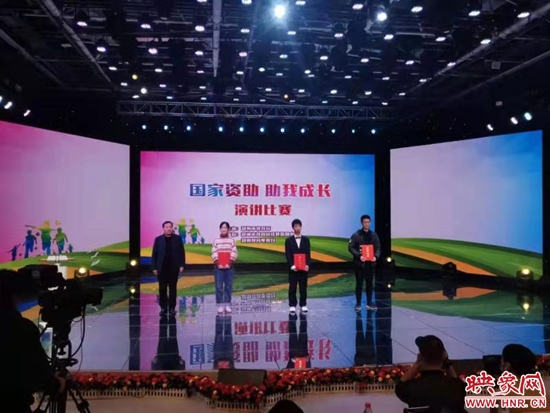 12月10日上午,郑州市教育局“国家资助,助我成长”主题演讲比赛活动决赛在郑州教育电视台演播大厅举行,登封市第一高级中学高二学生赵敬琪代表登封市参加比赛,并获得第一名。