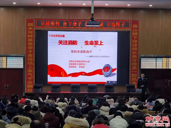 为了进一步增强广大教师的消防安全意识,切实普及消防安全知识,12月14日下午,登封市嵩阳高中邀请省安居防火宣教中心宣讲教官李俊良为该校全体教职工开展了题为“关注消防 生命至上”的消防安全知识专题培训。嵩阳高中校领导及全体教职工积极参与、认真聆听。